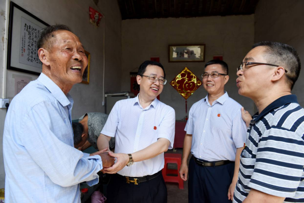 學(xué)習(xí)交流結(jié)束后,何興祥書(shū)記、陳國(guó)新第一書(shū)記帶領(lǐng)黨員們走家串戶(hù),慰問(wèn)了長(zhǎng)布村5戶(hù)老黨員,給他們送上了節(jié)日慰問(wèn)品,并為他們進(jìn)行了義診和健康宣教,送去了祝福與健康。五十多年黨齡的吳老伯今年88歲,指著墻上的“黨員之家”牌匾和“五十年黨齡”紀(jì)念獎(jiǎng)?wù)拢v述起自己年輕時(shí)的故事。80多歲的謝老伯身體硬朗,講起當(dāng)年打游擊的故事更是激動(dòng)萬(wàn)分。何興祥書(shū)記與老黨員親切交談,了解他們目前的身體狀況和生活情況,對(duì)老黨員多年來(lái)為黨的事業(yè)和當(dāng)?shù)氐陌l(fā)展所作出的貢獻(xiàn)表示感謝,囑咐他們要保重身體,一句句問(wèn)候、一聲聲叮囑,把最深情的問(wèn)候和祝福送到了老黨員的心坎上。